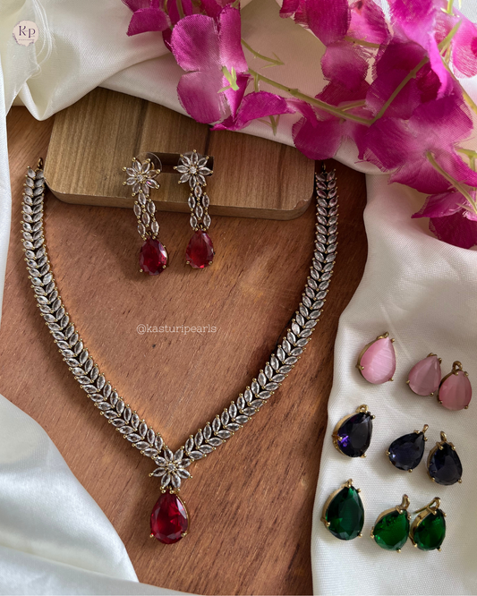 Kesari stone changeable Victorian Necklace set