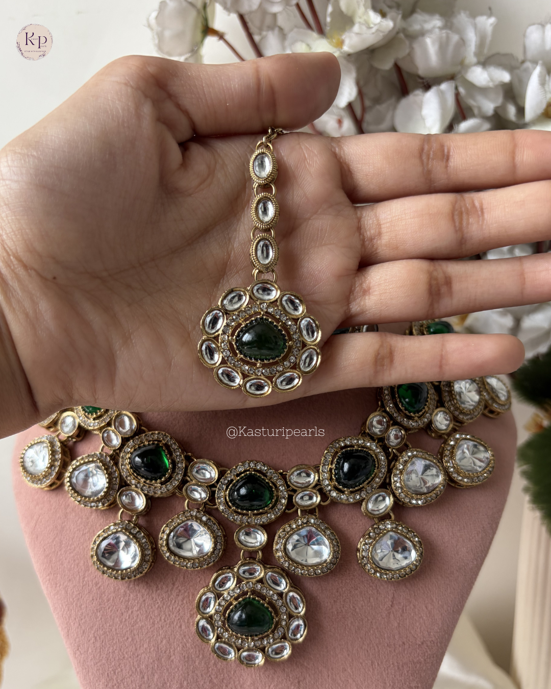 premium quality of Mehendi Polish Kundan Jewellery