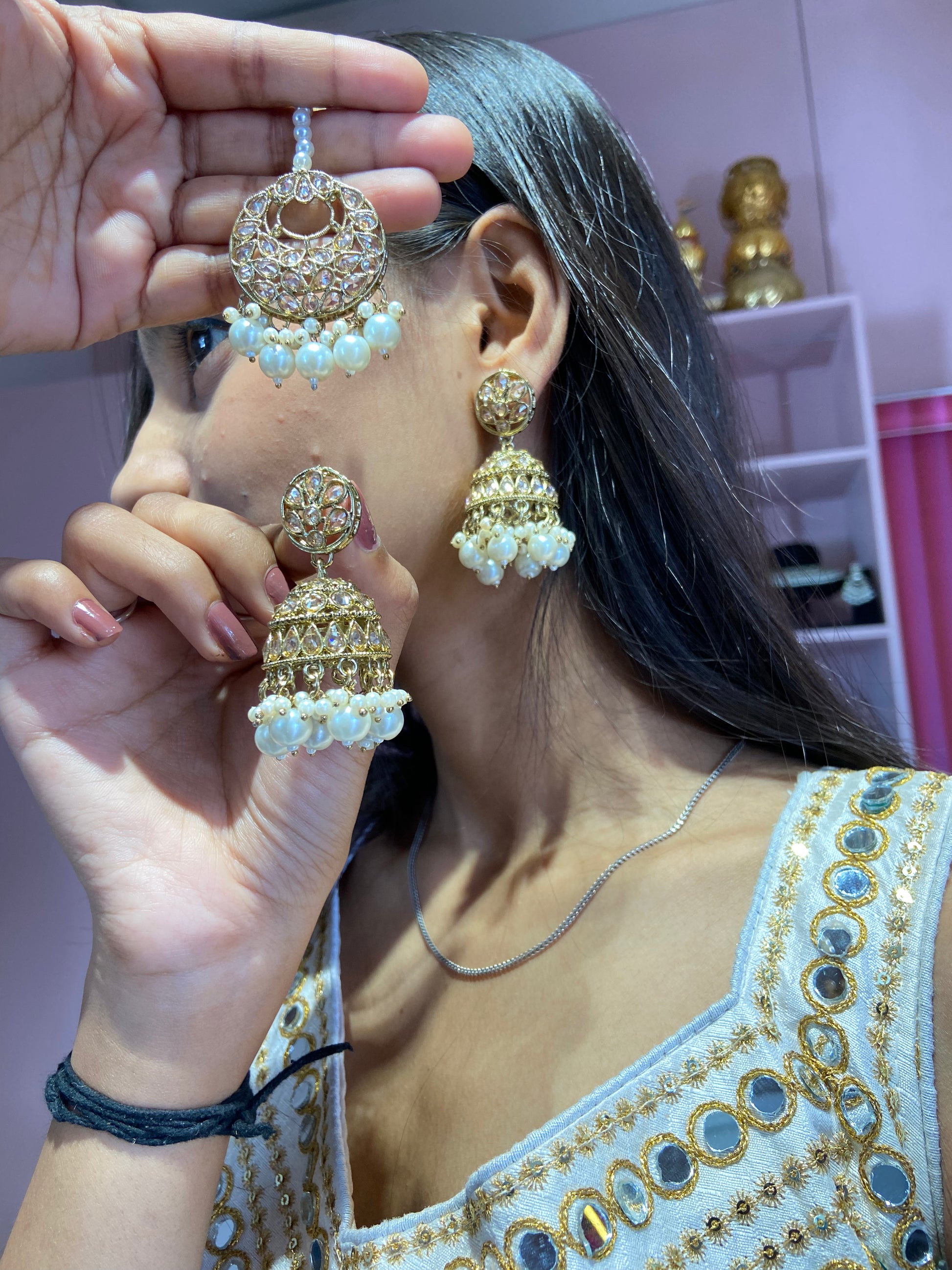 Reverse Polki Kundan Jhumka with tikka
